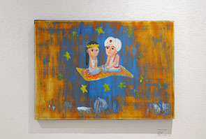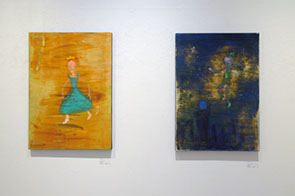 「最近は良く絵を削ってます。描いたり削ったり描いたり削ったり、 色の禿げた仏像や軍艦島の廃墟が好きな自分にとって、 それに加えて今回は、ファンタジーを削ることで妄想の中でフワフワもがくこの時代に ワビでもサビでもデカダンスでもヘタウマでもない劣化目指して、